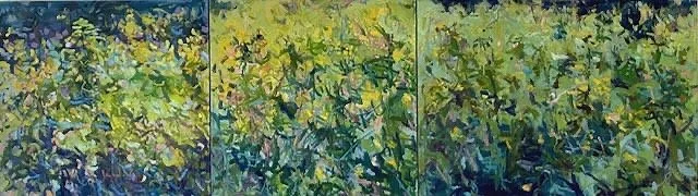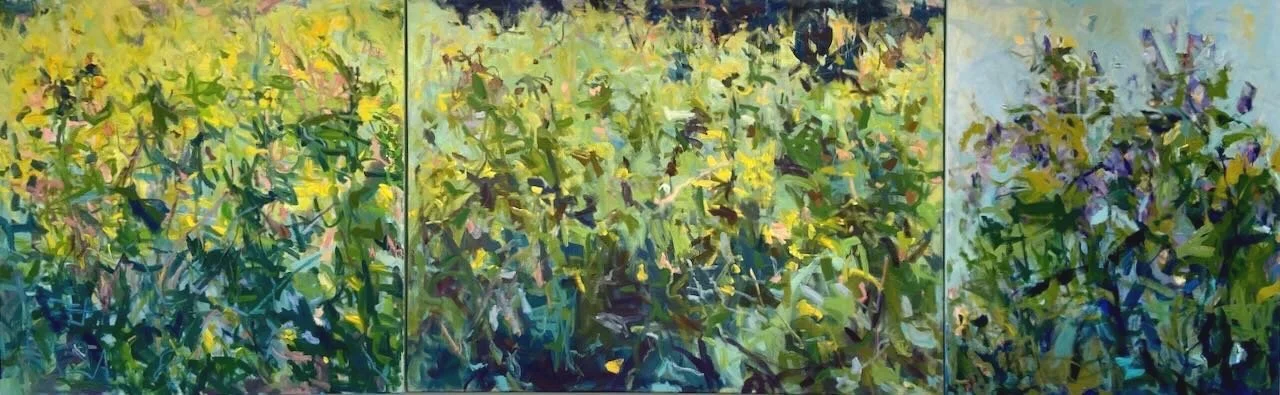 Meadow Series triptych with Butterfly Field painting on left 30x30,3030,30x40 oil