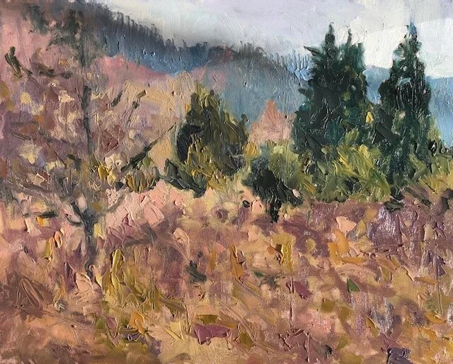 Apple Trees, Fall, Mountain 16x20 oil on linen