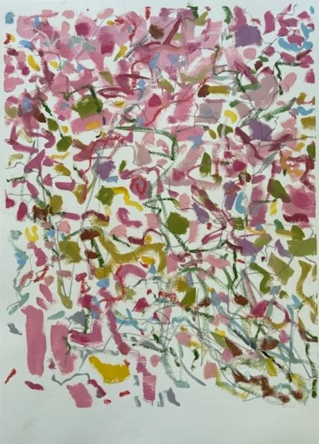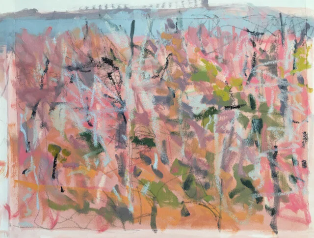 Winter Lake, Pinks mixed media on paper 10x14 framed 18x20 SOLD